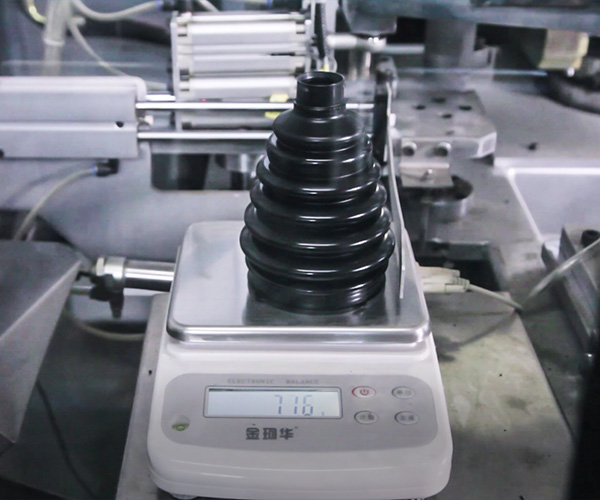 機器生產(chǎn)出來的球籠防塵罩,波峰及波谷處相同截面的壁厚均勻,實現(xiàn)產(chǎn)品自動